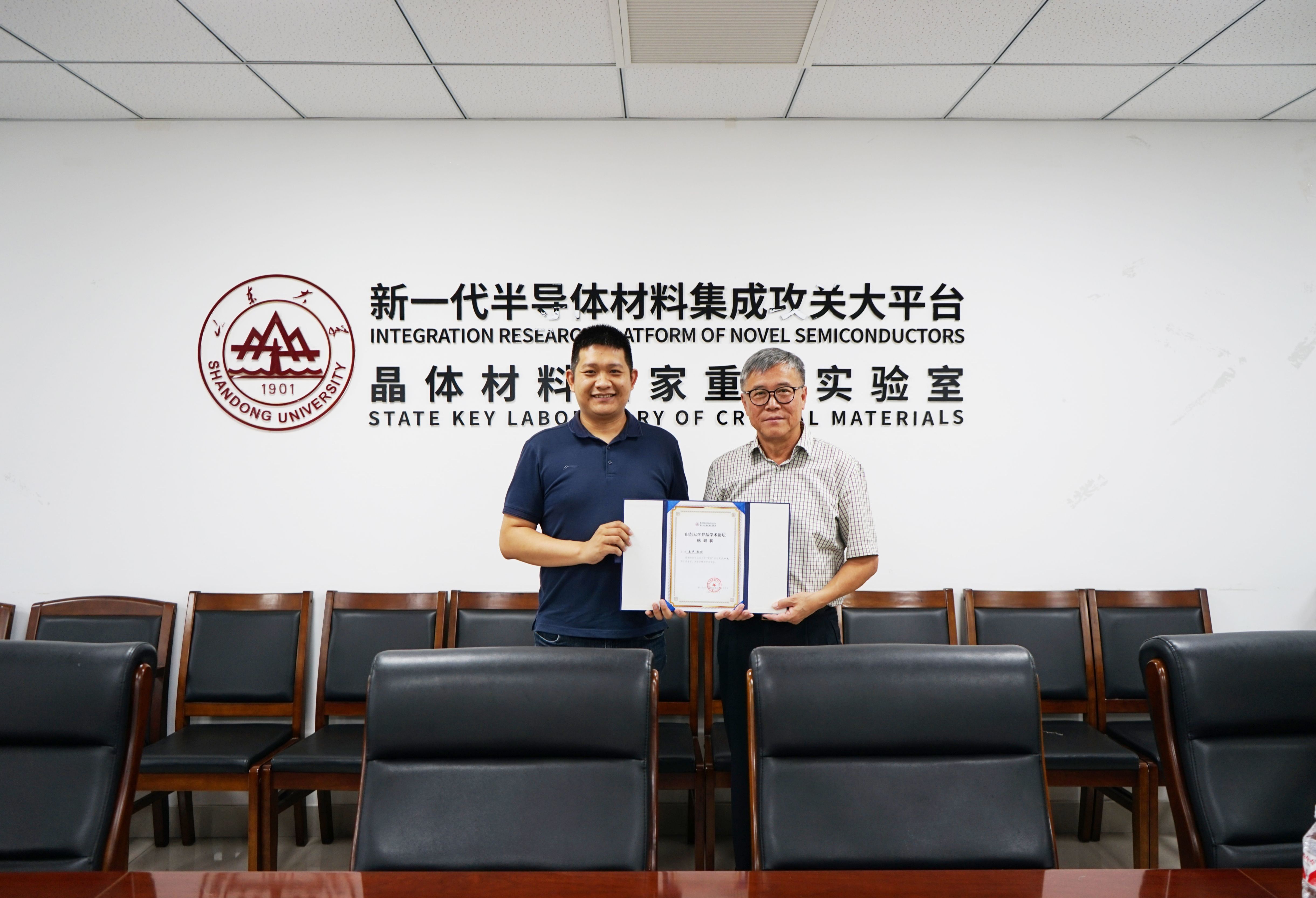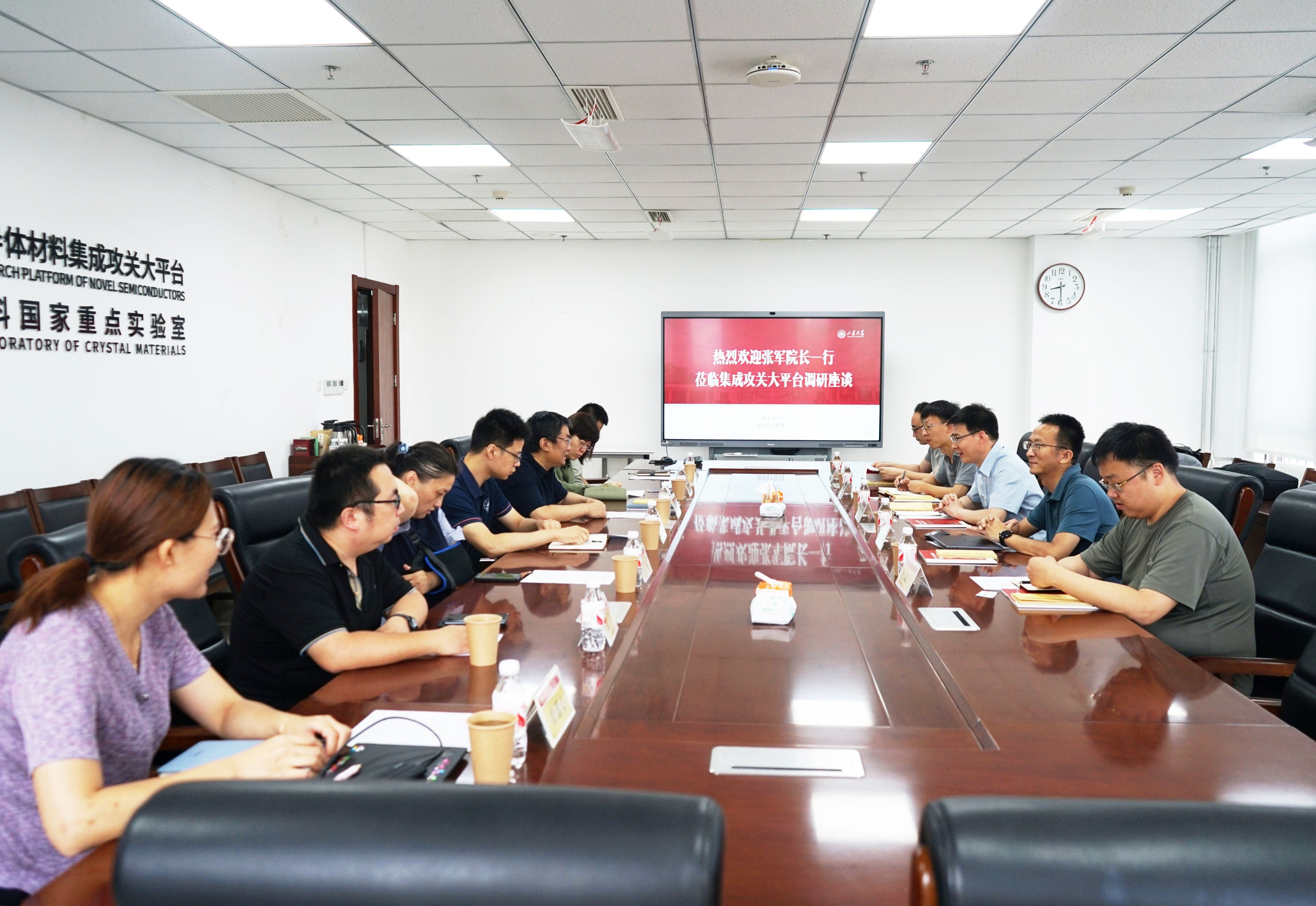 7月5日下午,国防科技大学前沿交叉学科学院院长张军一行到自拍偷拍 调研座谈。晶体材料国家重点实验室主任、半导体研究院院长徐现刚教授接待来访并主持会议。研究...