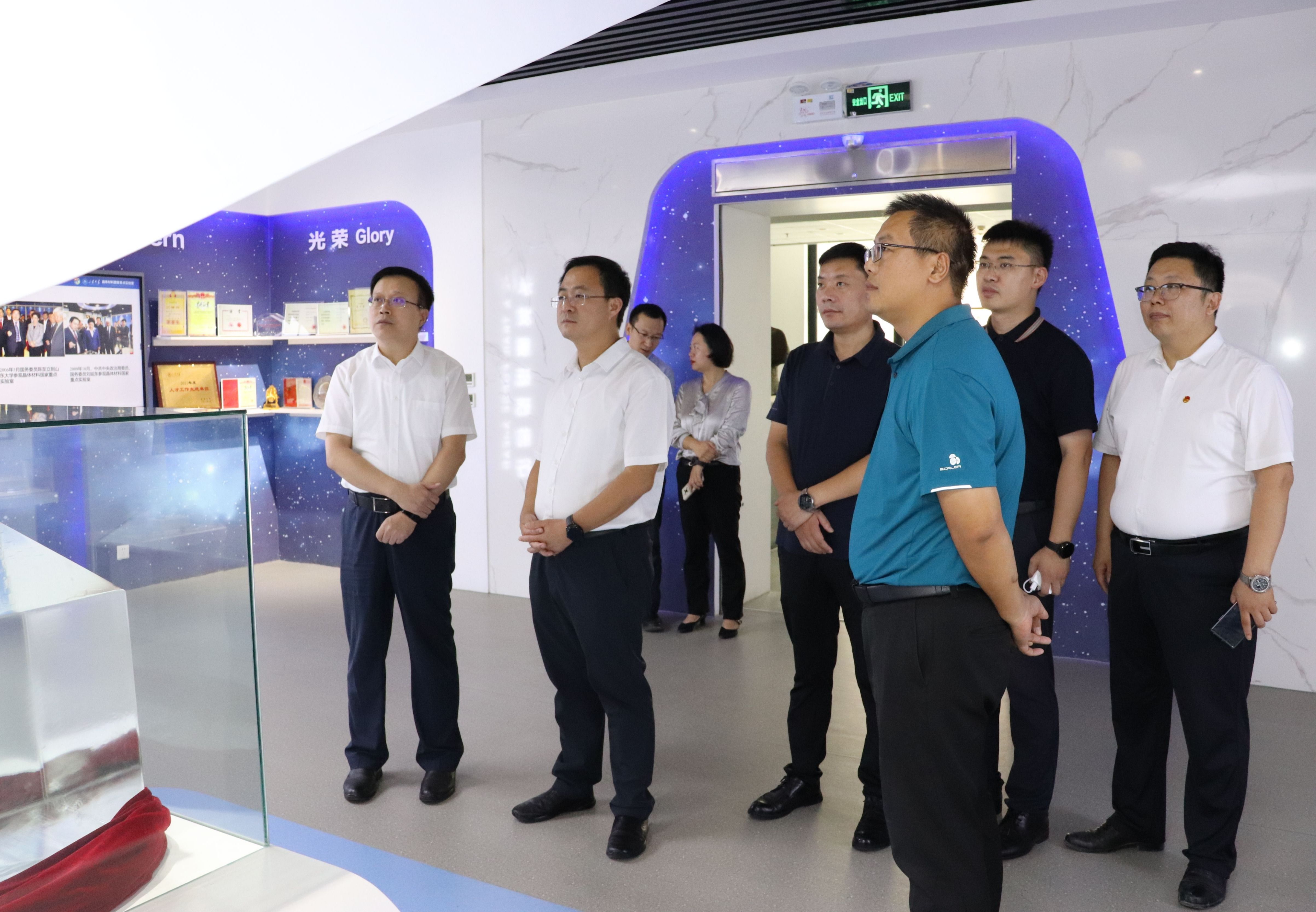 9月5日,团中央领导来访自拍偷拍 新一代半导体材料集成攻关大平台参观调研。集成攻关大平台党委书记曲刚、副主任任颖、平台相关教师陪同调研,平台教师彭燕作相关讲解。图:团中央领导来...