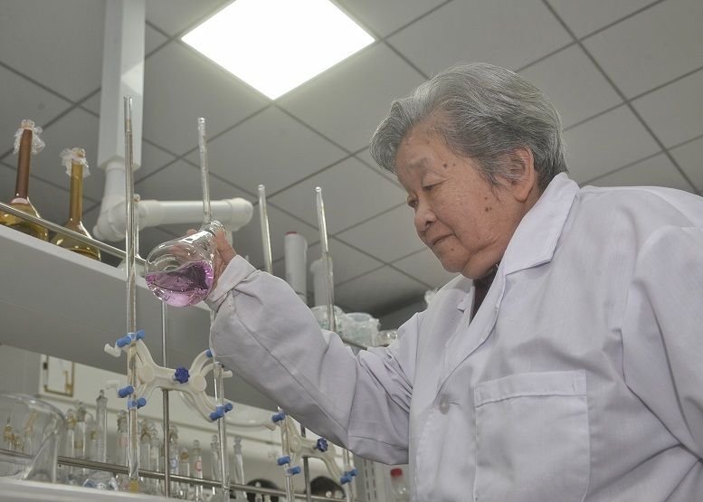 图:2021 年 1 月 8 日,我国具有重要国际影响力的磷化工领域专家钟本和在进行化学分析实验