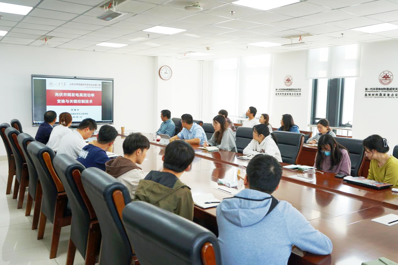 控制科学与工程学院杜春水教授受邀作为本期论坛主讲嘉宾,为平台师生作题为“光伏并网发电高效功率变换与关键控制技术”的报告。论坛在半导体研发大楼第一会议室举办,由大平台崔潆心副研究员主持。
