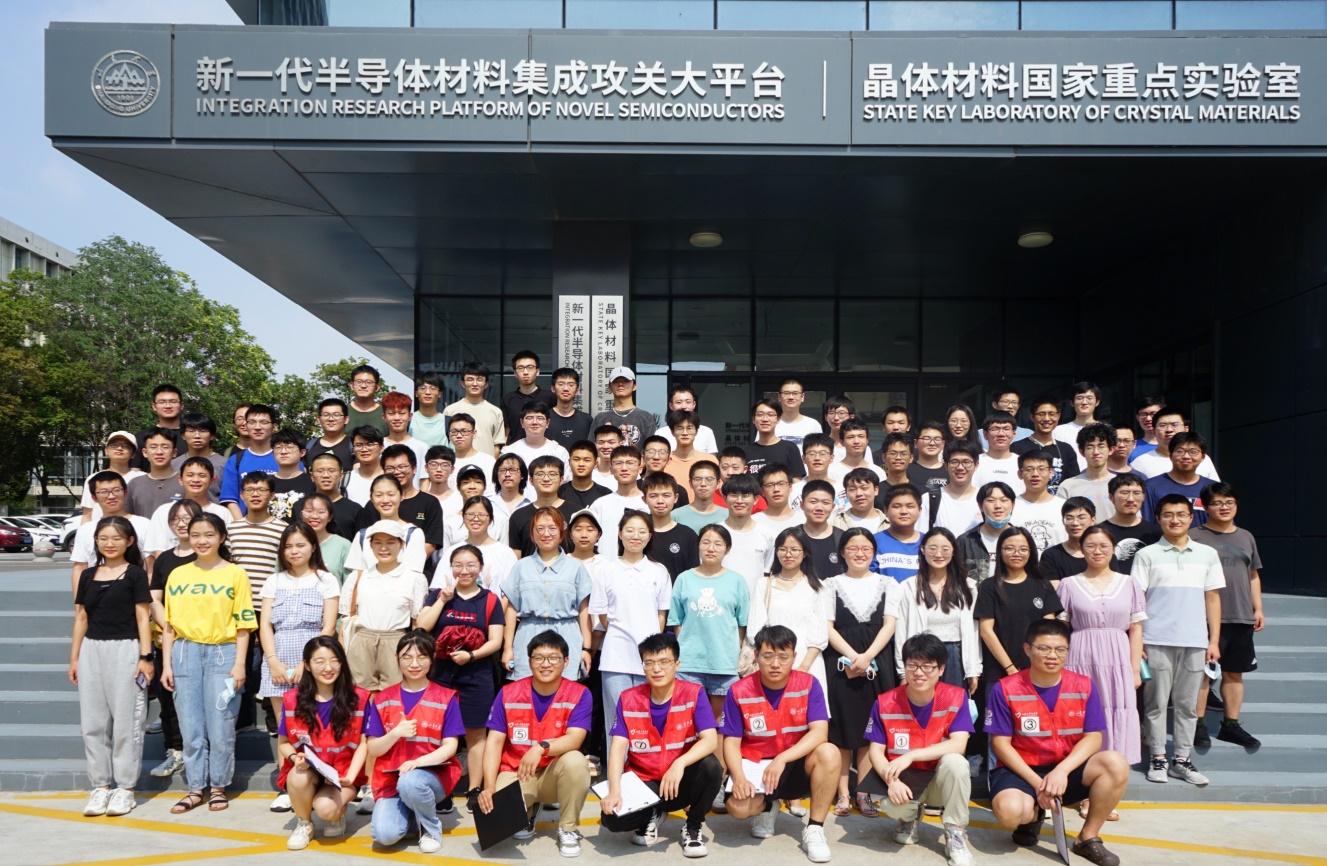 活动分为两部分,实验室参观和座谈交流。同学们在志愿者的带领下分批次参观了大平台金刚石生长实验室、压电晶体实验室、氮化铝单晶实验室、氧化镓单晶生长实验室、碳化硅生长实验室、激光技术实验室、器件实验室等。每位老师为同学们深入讲解实验仪器与设备日常的运转操作流程,以及介绍本领域研究现状、特色之处以及未来的发展前景,并针对同学们提出的问题耐心解答,让同学们在参观过程中有了更直观地视听说体验。