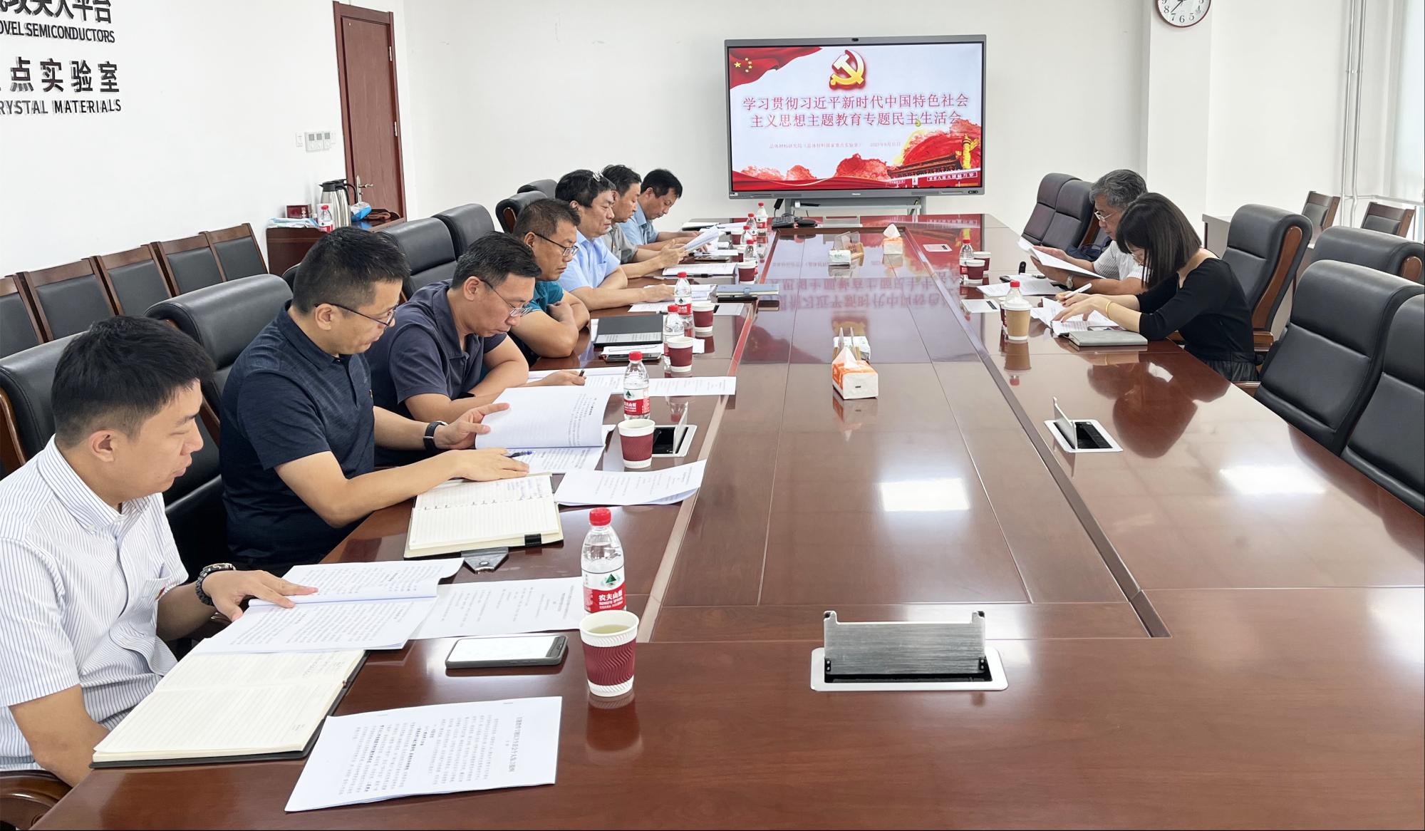 、晶体材料研究院召开学习贯彻习近平新时代中国特色社会主义思想主题教育专题民主生活会。学校主题教育第二巡回指导组组长任若强、组员吕宁到会指导,党委书记曲刚主持会议。