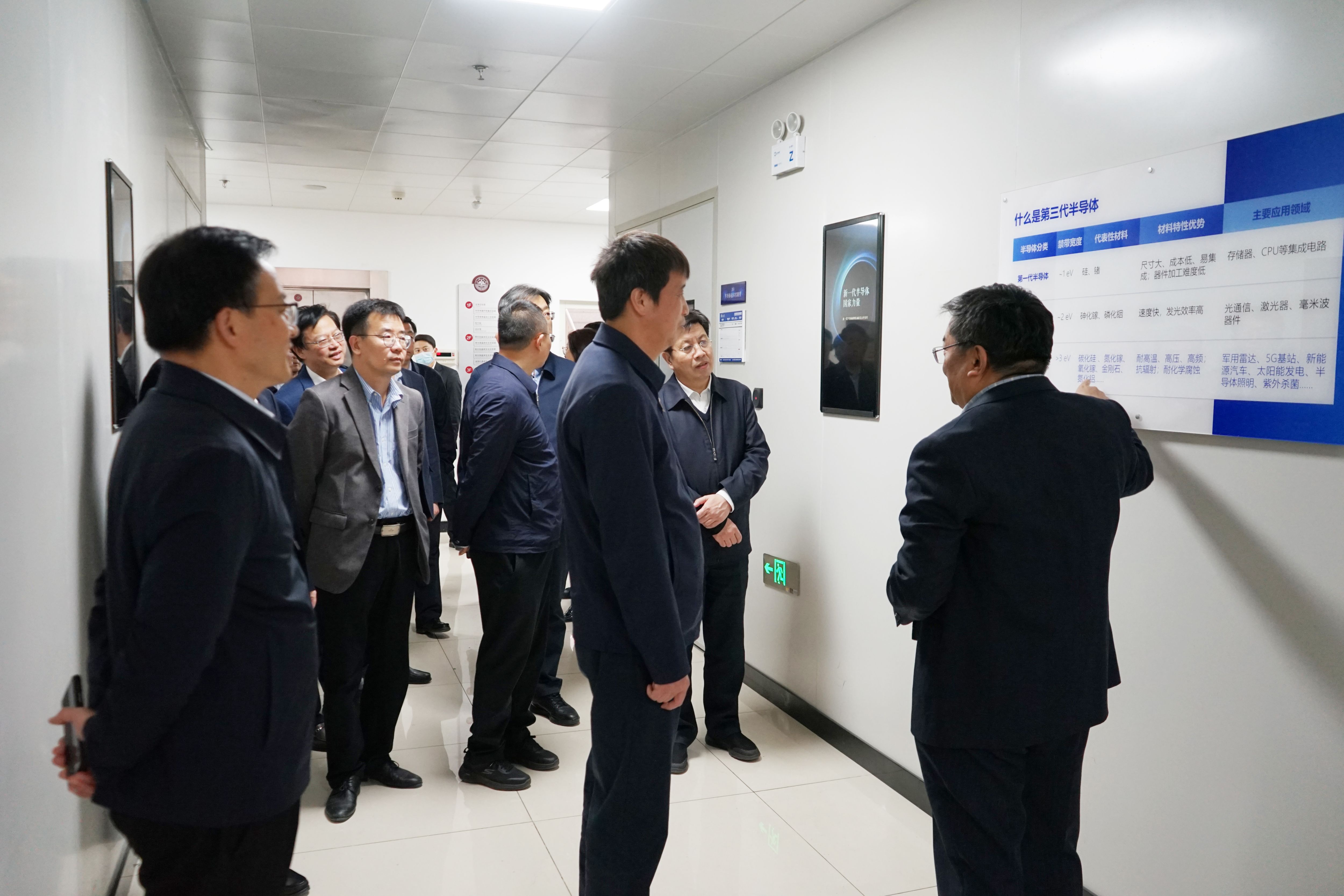 3月28日,山西省副省长熊继军一行来访晶体材料国家重点实验室、新一代半导体材料集成攻关大平台参观调研。自拍偷拍 副校长易凡,科研院院长周传健等领导陪同调研。集成攻关大平台主任徐现刚教授作相关讲解。