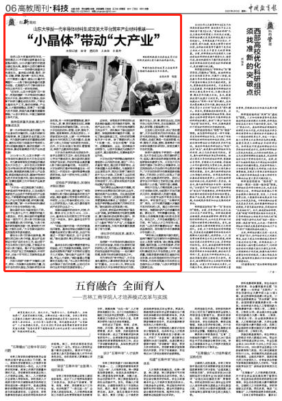 2023年5月8日《中国教育报》第6版发表文章《自拍偷拍 新一代半导体材料集成攻关大平台筑牢产业材料根基——“小晶体”带动“大产业”》,对国内大尺寸碳化硅生长与加工技术的又一标志性突破进行报道。文章评价集成攻关大平台服务国家战略、政产学研融合、人才机制改革等方面取得一系列重大突破,持续为高质量发展蓄势赋能。