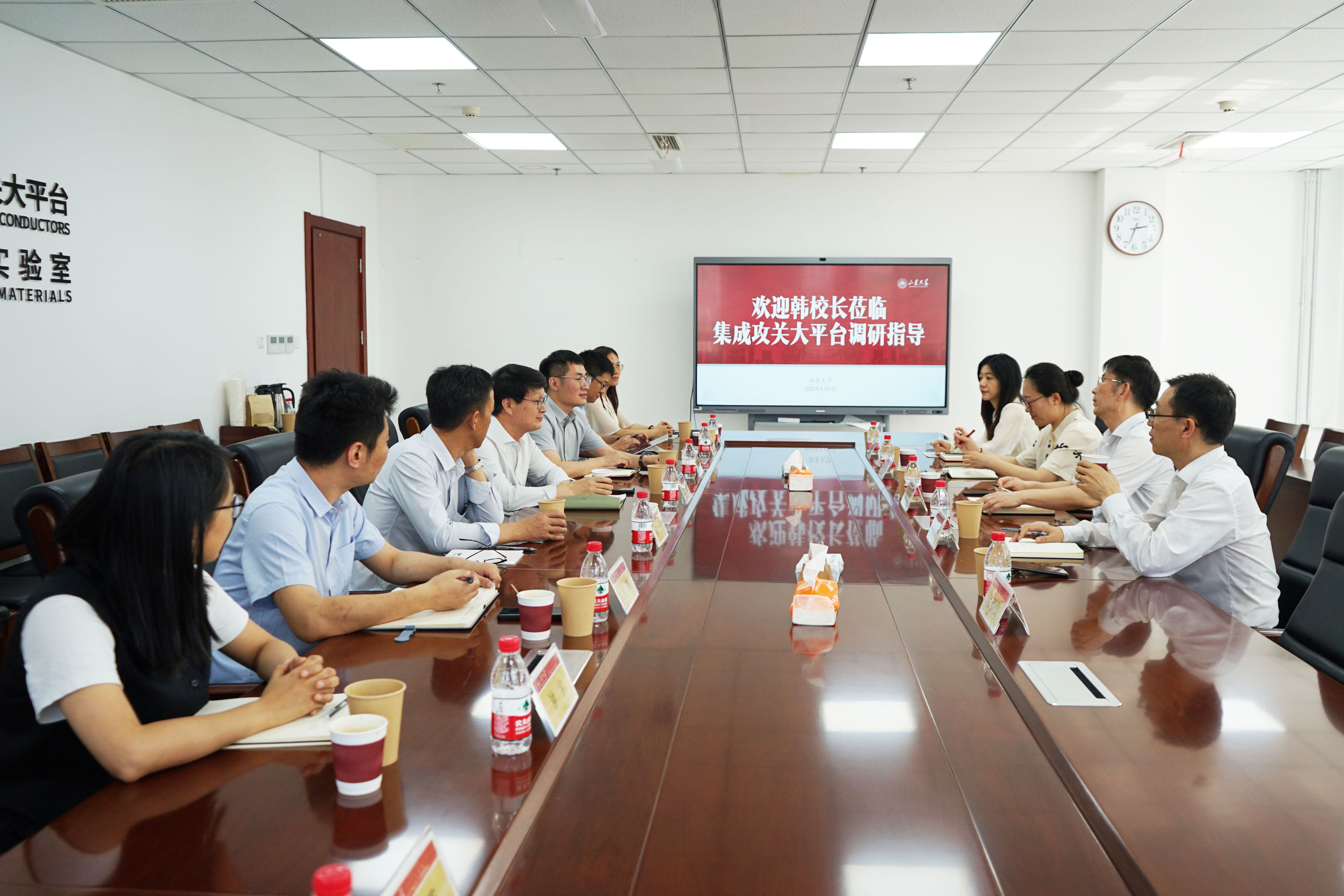 6月6日下午,自拍偷拍 前副校长韩圣浩教授,国际事务部部长孙凤收,副部长姜宏敏、张佳琦、高歌等领导来访新一代半导体材料集成攻关大平台参观调研。集成攻关大平台特聘教授韩吉胜、特聘教授Handoko LINEWIH及相关专家教授陪同座谈,副主任王焕杨做相关讲解。