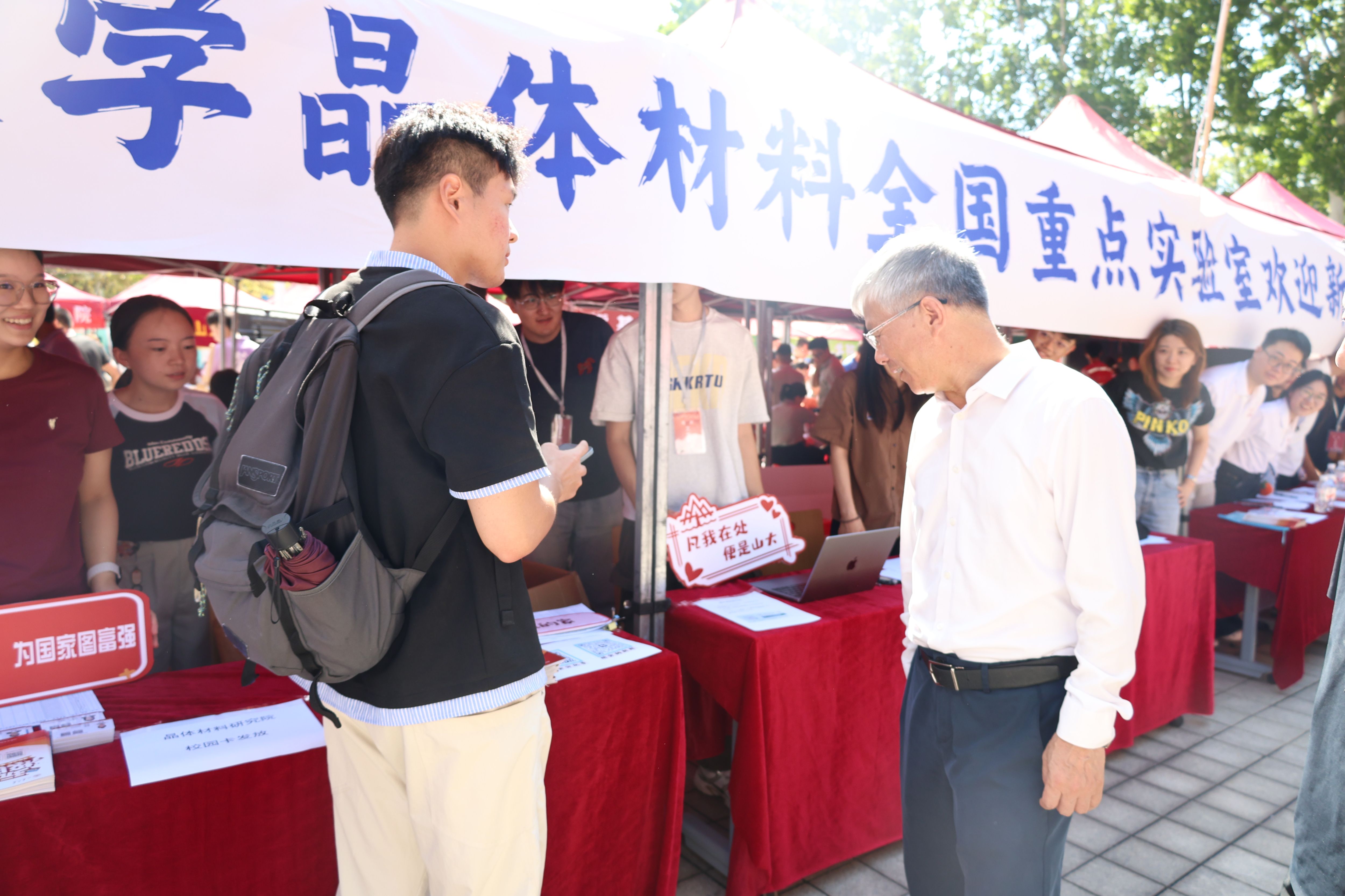 党总支书记刘全芬,晶体材料全国重点实验室主任、研究院院长徐现刚,研究院副院长任颖,院长助理徐明升等班子成员参与迎新,并同师生亲切交流。
