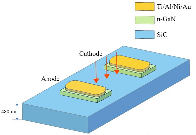 目前制备光导开关的半绝缘SiC材料可以通过点缺陷或掺杂两种补偿形式获得,并且也存在4H和6H两种晶型结构,不同补偿类型和晶型都对SiC光导开关的导通特性产生影响。结合本团队在SiC生长以及器件制备的优势,利用不同SiC材料研制同面型SiC光导开关,并对开关在非本征触发下的导电特性进行系统分析,研究发现仅高纯SiC光导开关的电流和电压波形均表现出明显的拖尾现象,而掺钒4H-SiC和掺钒6H-SiC光导开关电流和电压波形没有拖尾,但是其波形会存在振荡现象,认为该现象是由于缺陷浓度产生的,并进行系统分析。此外得到工作电压24kV、工作电流364A,最小导通电阻1Ω的SiC光导开关,器件性能优异。