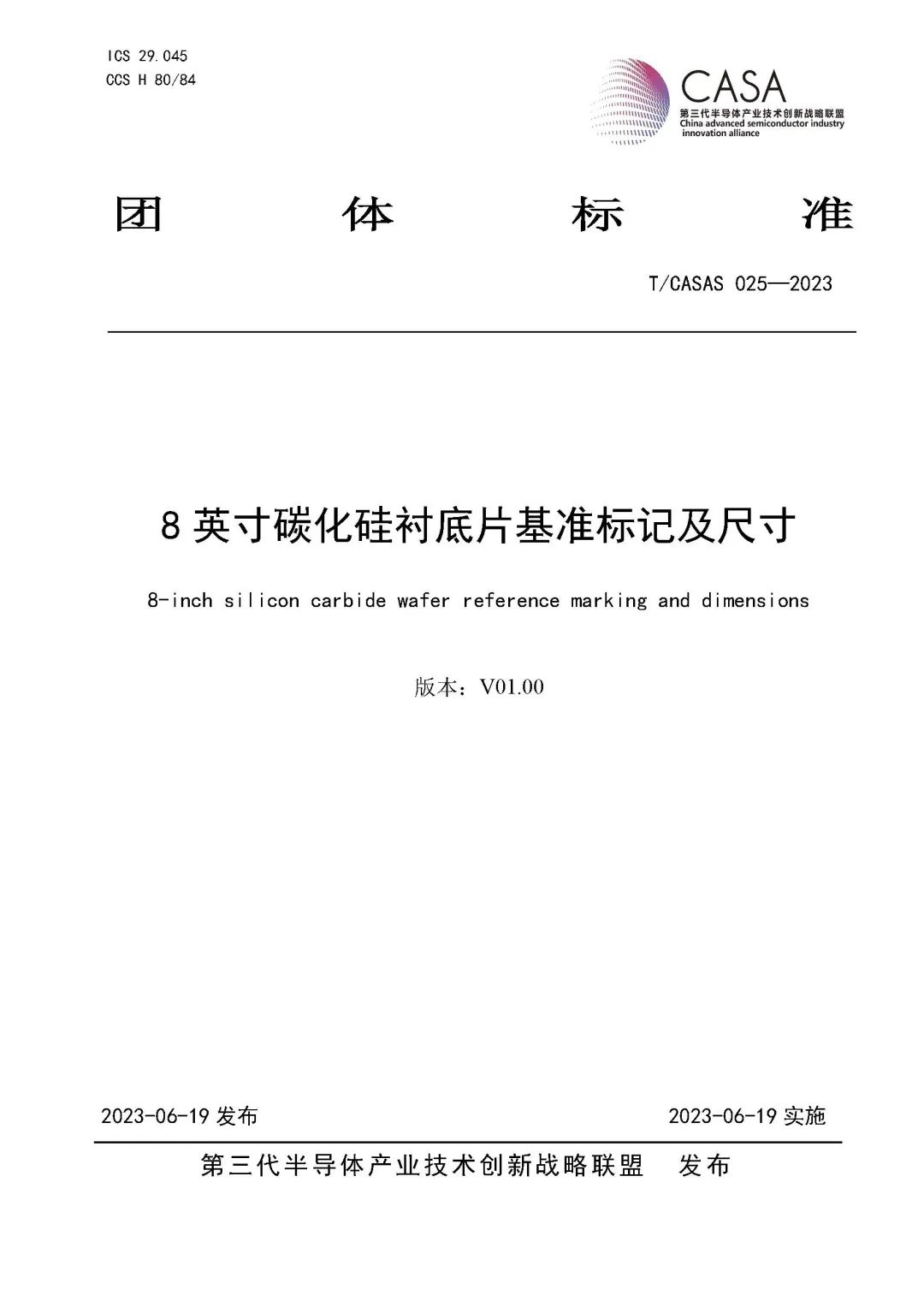 牵头制定,与第三代半导体产业技术创新战略联盟合作,制定《8英寸碳化硅衬底片基准标记及尺寸》、《碳化硅少数载流子寿命测定微波光电导衰减法》、《碳化硅晶片表面金属元素含量的测定电感耦合等离子体质谱法》3项标准,并于2023年6月19日正式面向产业发布。