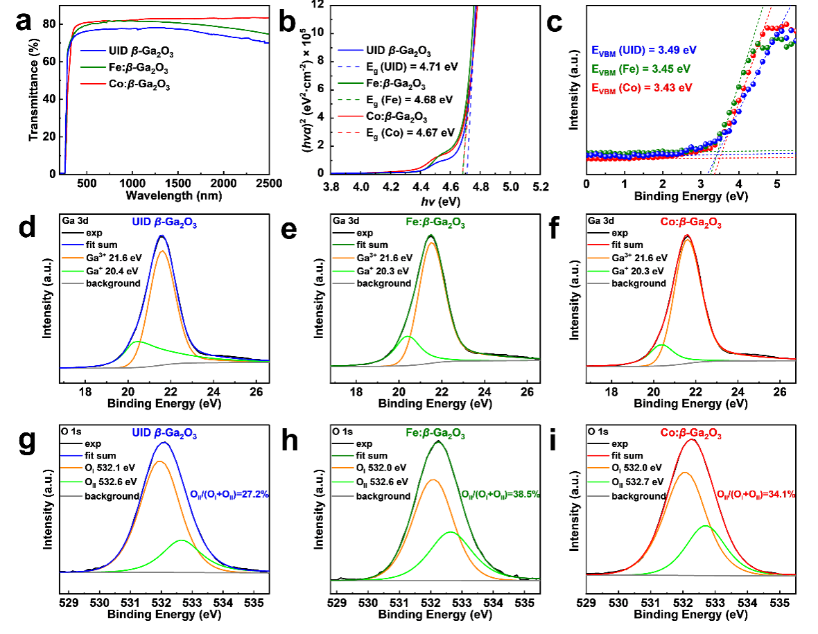 论文中以非故意掺杂β-Ga2O3及Fe掺杂半绝缘β-Ga2O3单晶为参照样,系统表征了Co掺杂半绝缘β-Ga2O3单晶的结晶质量、光学性能、电学性能及光响应性能。