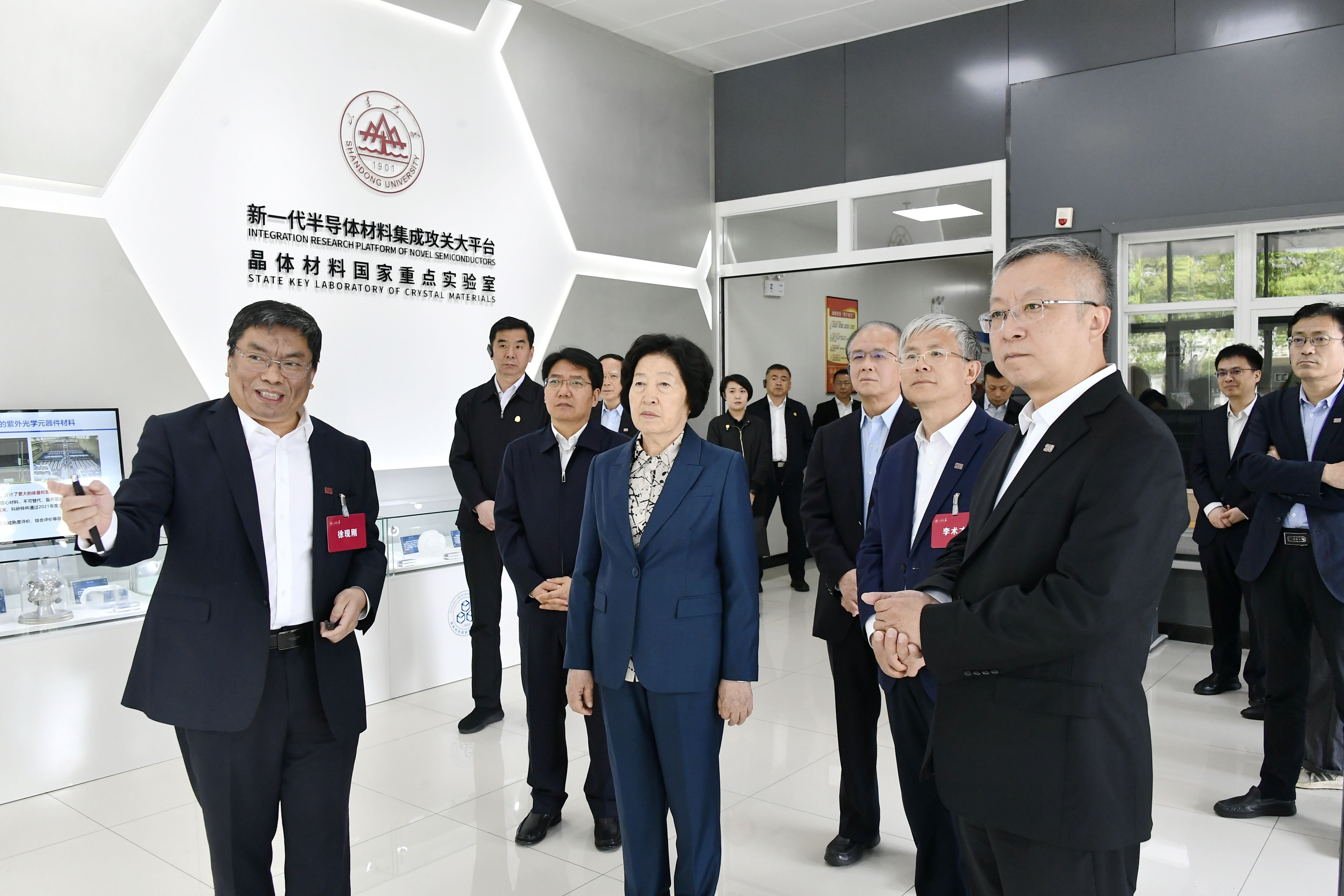 4月23日,国际儒学联合会会长孙春兰到自拍偷拍 参观调研。国际儒联常务副会长丁伟,山东省人民政府党组成员、副省长邓云锋,自拍偷拍 党委书记任友群,校长李术才陪同调研。晶体材料国家重点实验室主任、自拍偷拍 院长徐现刚作讲解。