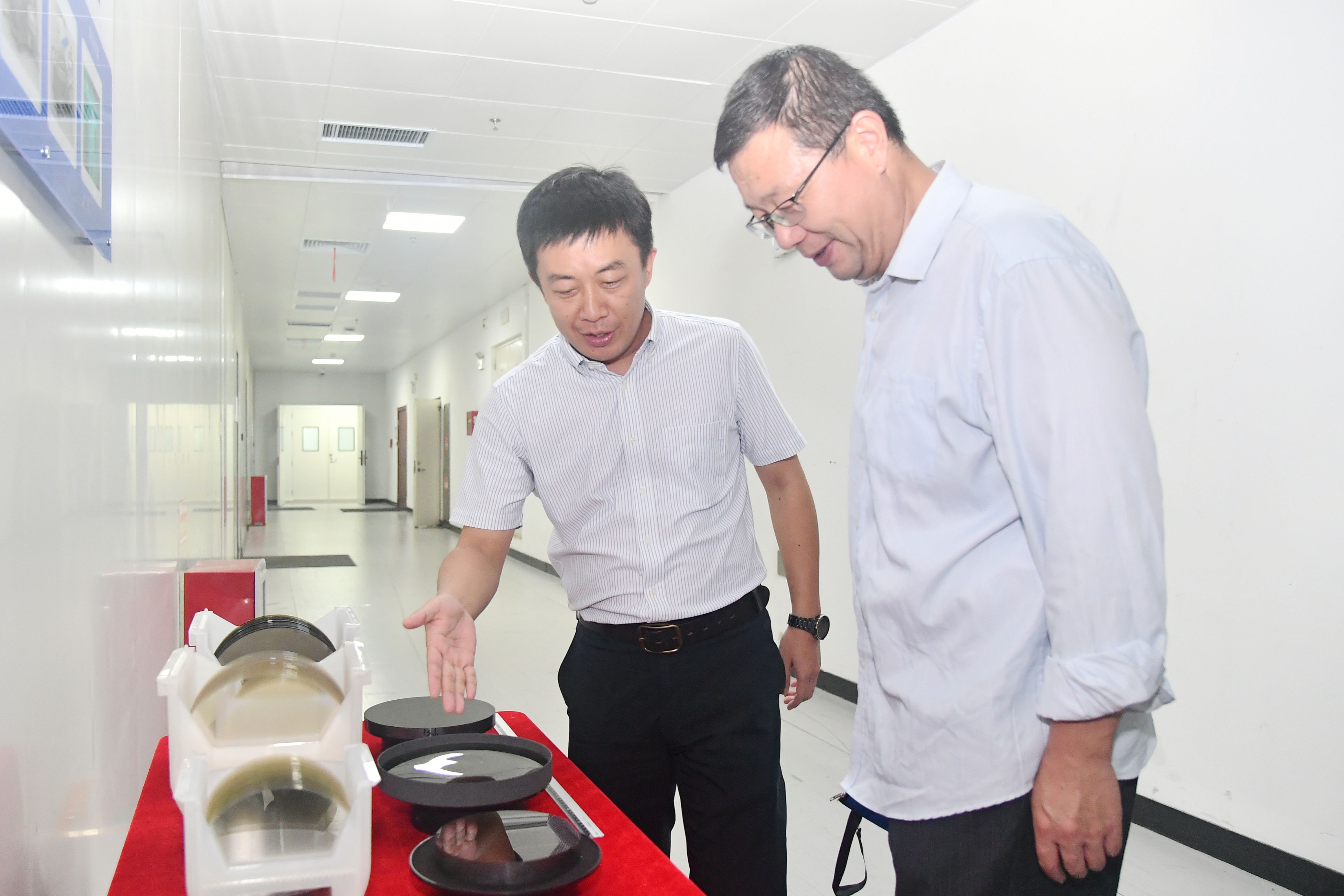 座谈会前,调研组参观了新一代半导体材料集成攻关大平台,实地了解了实验室瞄准国际科技前沿和国家重大战略需求,在原创基础理论突破、攻克关键领域“卡脖子”难题、推动科技成果转化、拔尖创新人才培养等方面的成果情况,大平台副主任任颖作相关讲解。