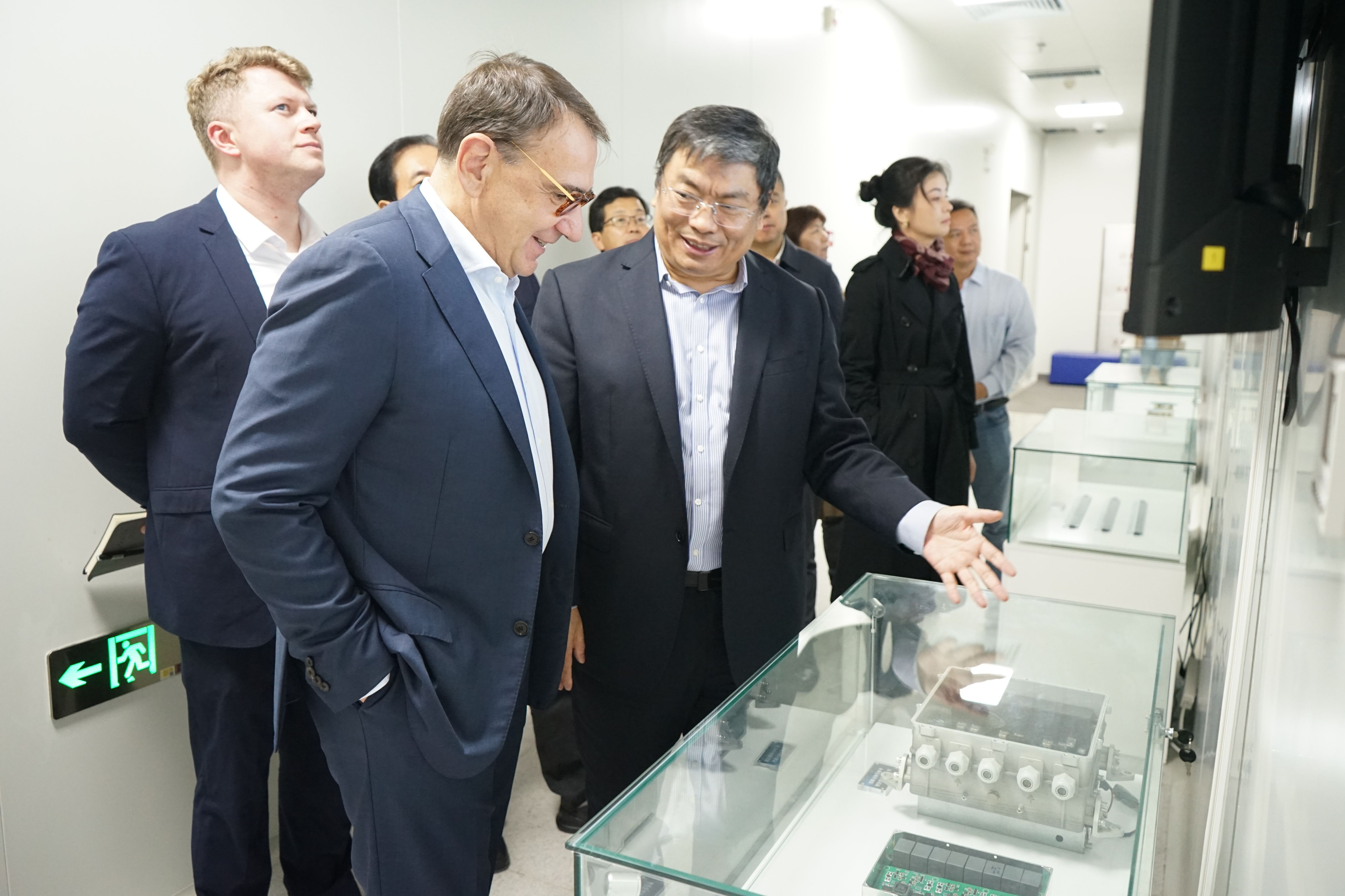 10月18日下午,广州增芯科技有限公司联席总经理、原意法半导体高级副总裁马可·蒙蒂一行到新一代半导体材料集成攻关大平台参观调研。济南市原市委常委、副市长王宏志,自拍偷拍 党委副书记陈宏伟等领导陪同调研,晶体材料国家重点实验室主任、集成攻关大平台主任徐现刚接待来访。
