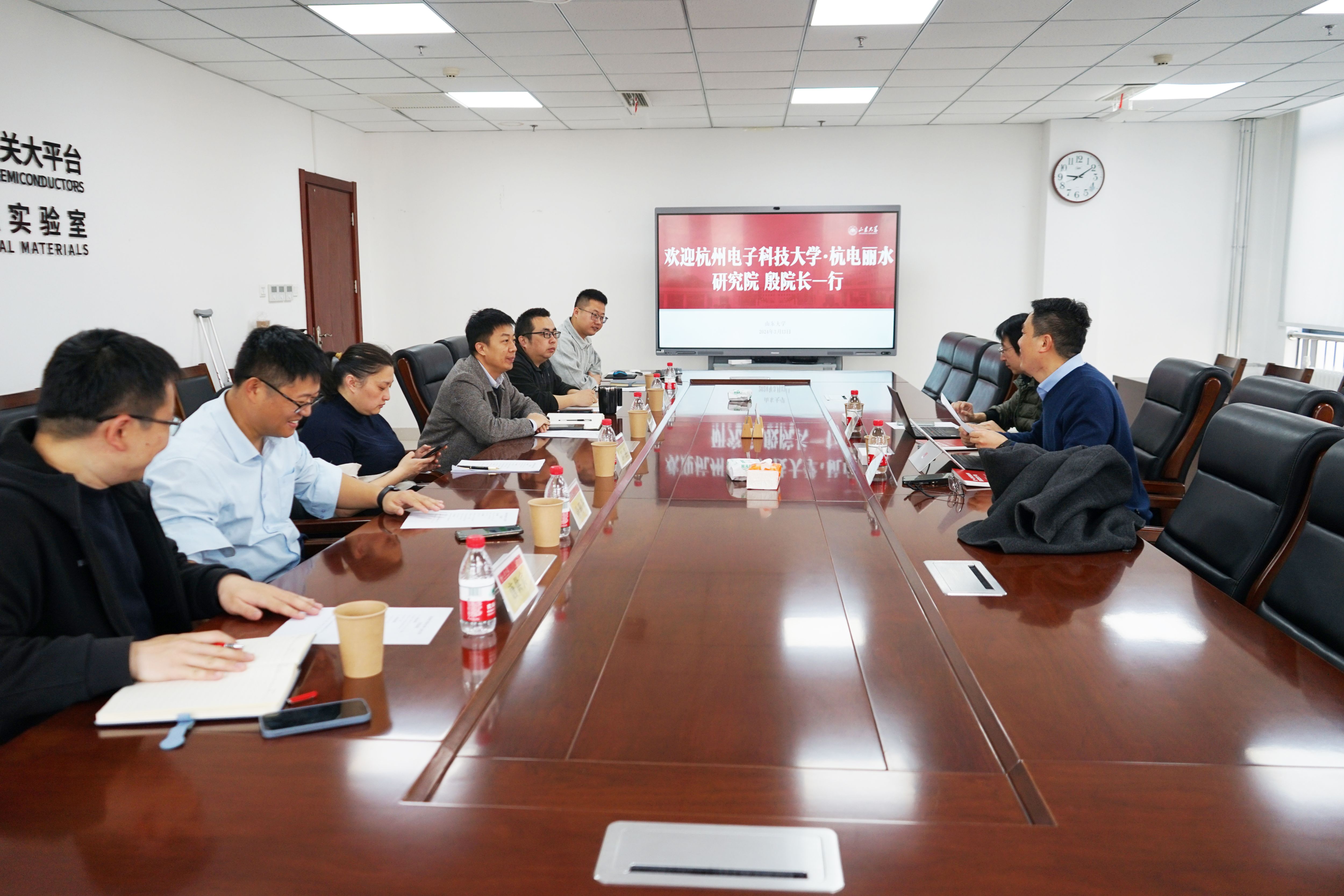 双方介绍杭州电子科技大学及丽水研究院情况与自拍偷拍 发展情况,研究院各攻关组代表分别介绍金刚石、氮化铝、新型器件等发展情况。双方展开自由交流,洽淡未来合作规划。